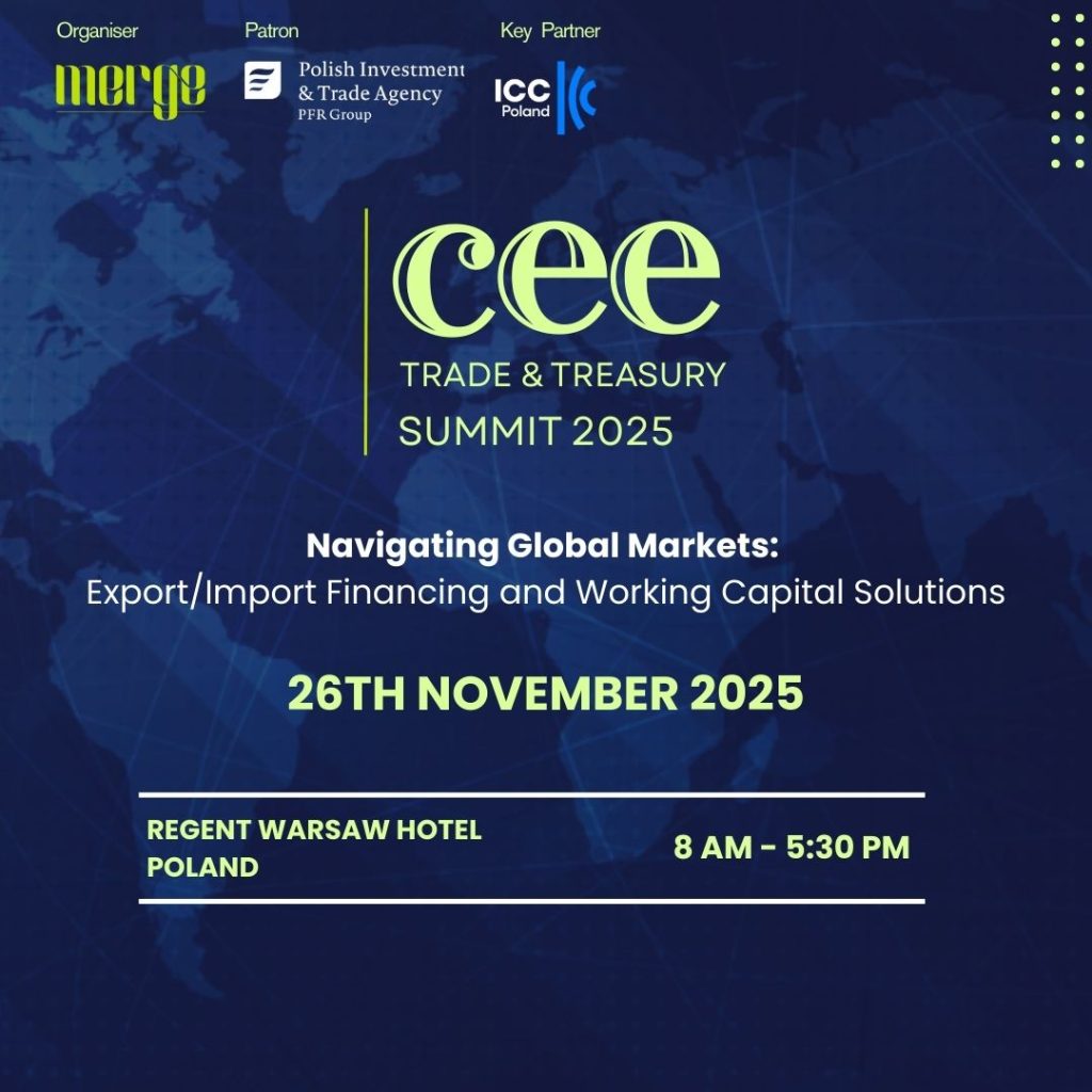 We are proud to partner with MERGE for their second CEE Trade & Treasury Summit 2025, taking place on 26th November 2025 at the Regent Warsaw Hotel, Poland, held under the patronage of the Polish Investment and Trade Agency.